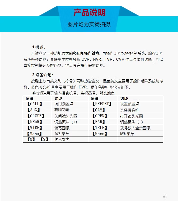 THL-CAROTZ4856主控键盘按照人机工程学原理进行设计,使用云台操纵杆可以非常方便地控制云台转动,它的按键,布局合理,操作简单易学。它能完成Ancned矩阵切换控制系统的全部操作和设置编程,可以非常方便地控制云台、镜头和其它设备。还可以单独控制高速球和解码器。